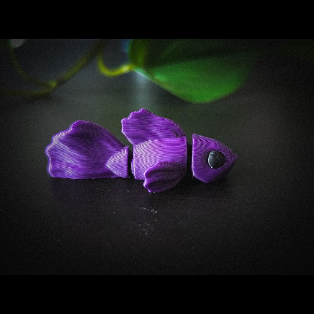 Crafted for fun and sensory appeal, the fish flexes beautifully along its segmented body and tail. It prints cleanly without supports, thanks to inventive “no-support” STL design techniques widely used in the maker community . Choose from multiple sizes—from mini (1″) to large (3″, with a keyring hole)—and vibrant color filament for a personalized touch [].