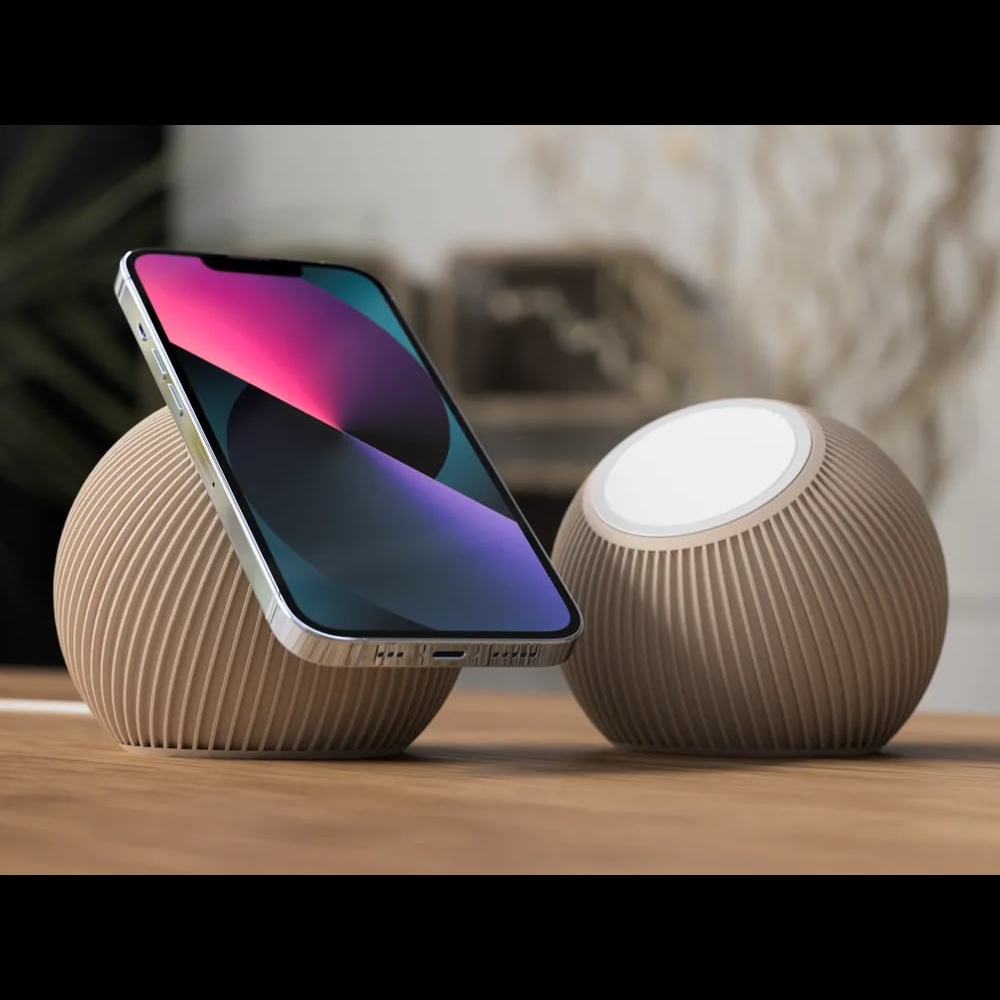 Elegant MagSafe phone charging stand—stylish materials, magnetic docking, adjustable and clutter-free.