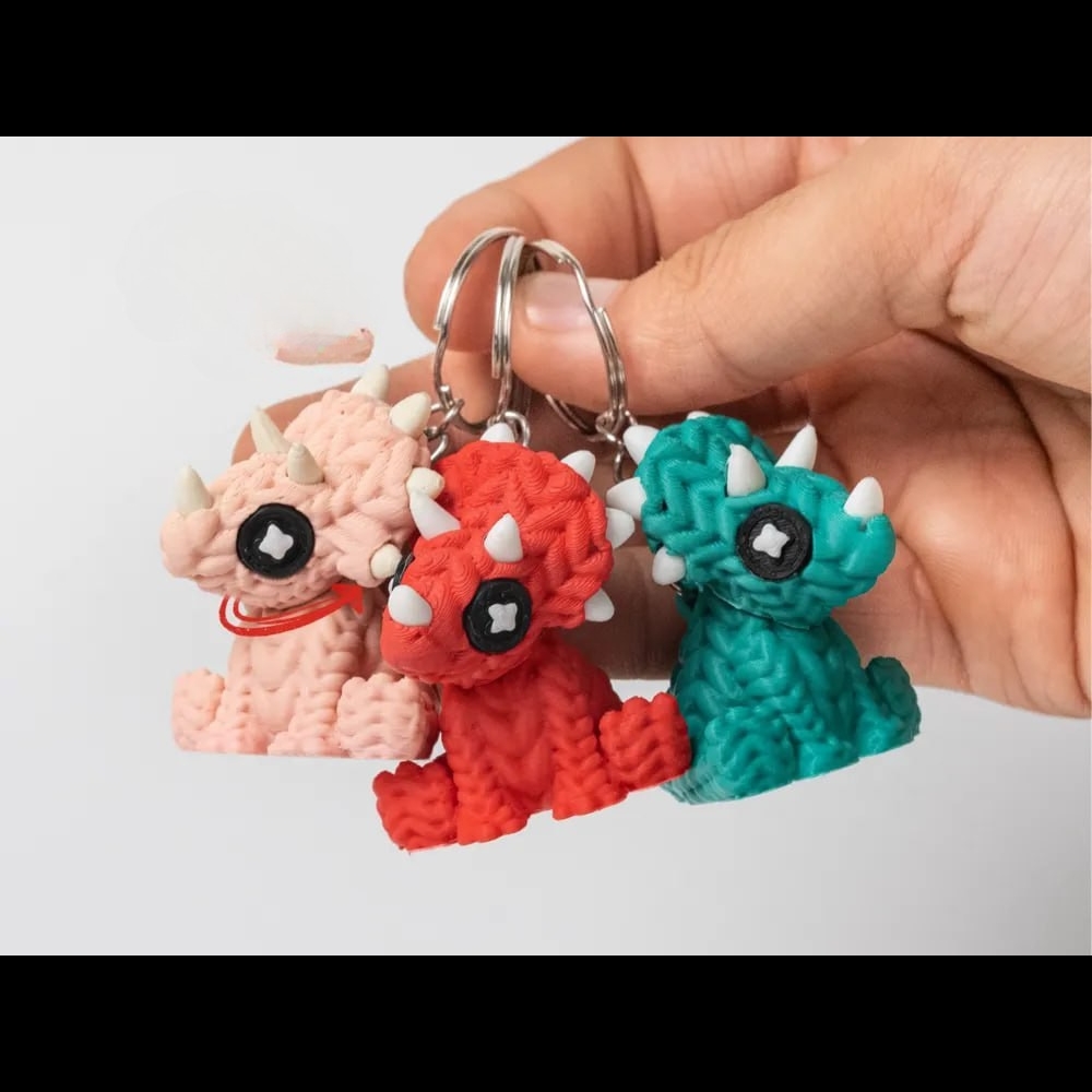 Add a dash of prehistoric charm to your daily essentials with this Mini Knitted Articulated Triceratops Keychain—a handcrafted amigurumi-style charm that’s as adorable as it is functional. Featuring articulated joints for a dynamic pose, this tiny dinosaur is made with soft yarn, embroidered details (or stitched safety eyes), and a sturdy metal key ring for easy attachment to bags, keys, or zippers.