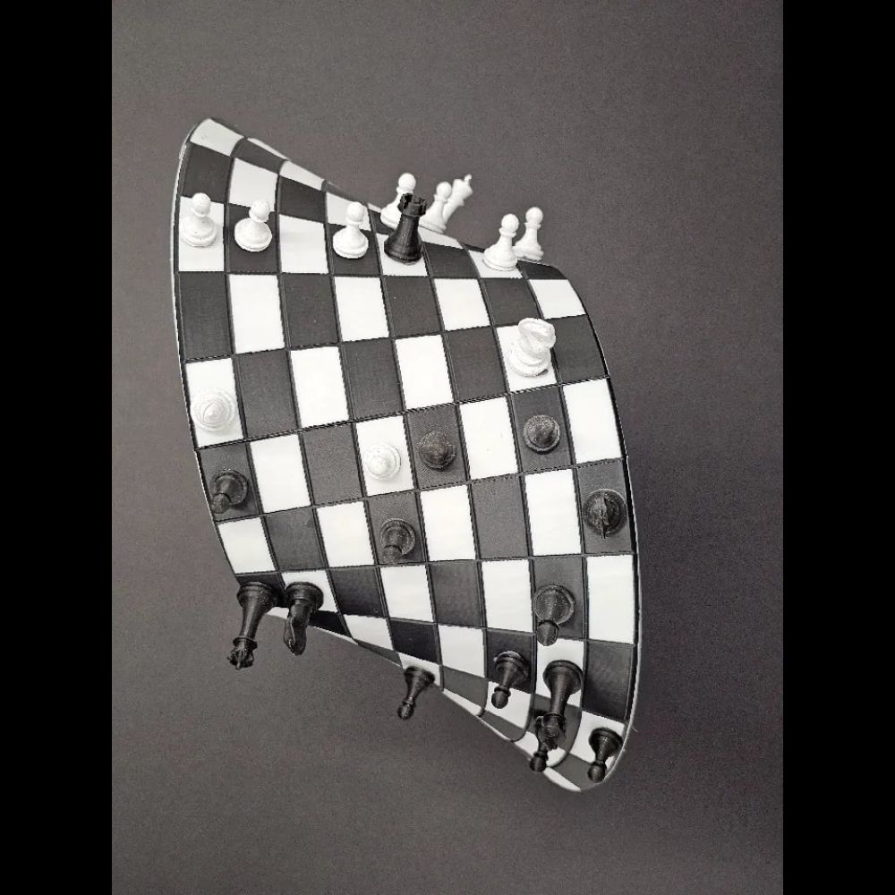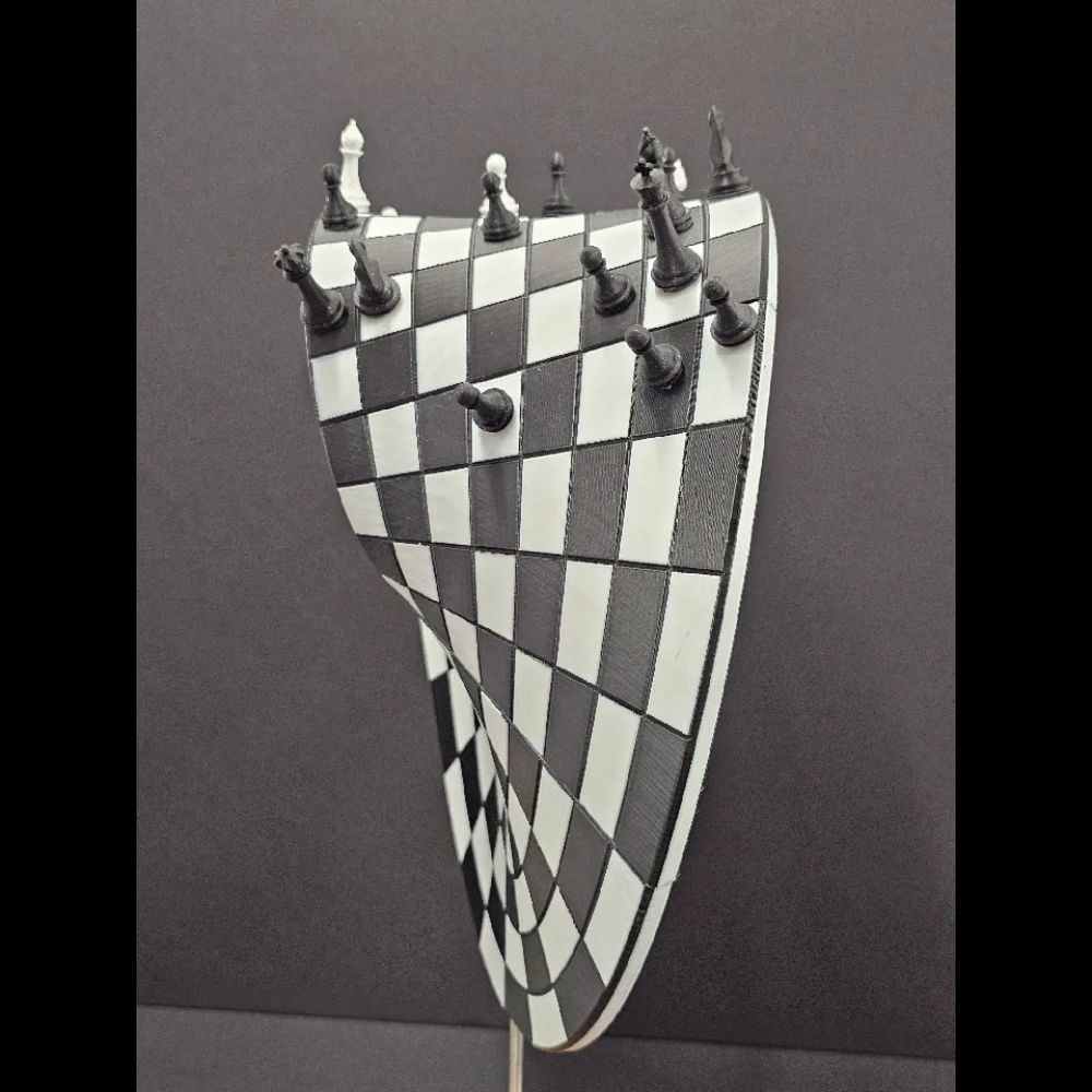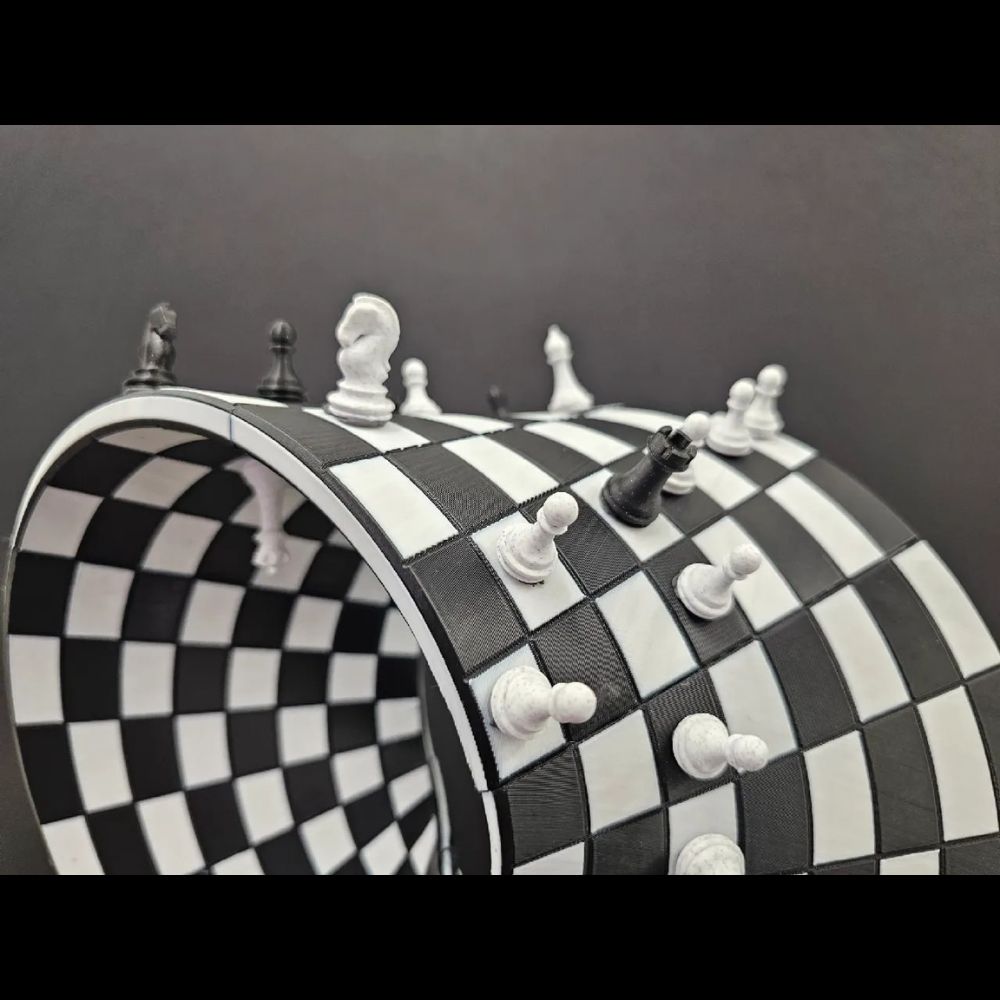 A sturdy Möbius Strip chess board (foldable or printed), with 8×8 grid that wraps seamlessly.