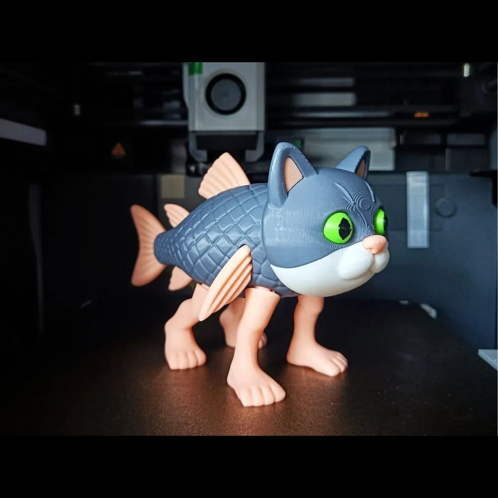 Unique Design: Cat head + fish body + human-like legs — a surreal meme figure