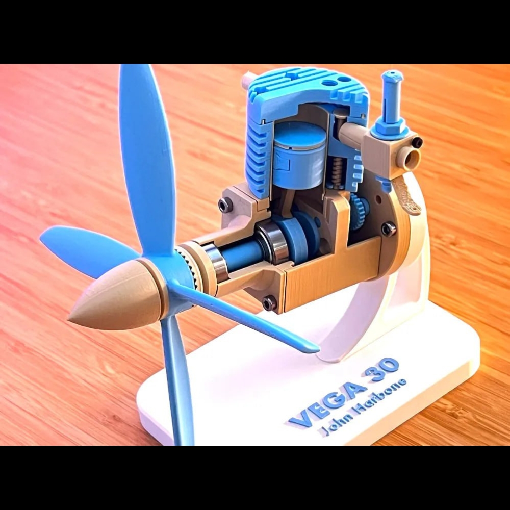 Bring aviation history to your workspace with the Vega 30 Engine Model Kit, a meticulously detailed 3D print and assemble replica of John Harbone’s rare four-stroke glow engine (.30 cu in) from late-1980s UK. This highly accurate STL model features precision components including crankshaft, pistons, cylinder, bearings, and exhaust detail, recreated from authentic blueprints and prototype design.